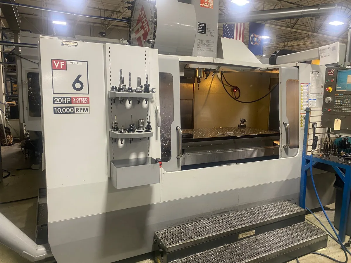 2008 / Del 2010 HAAS VF-6/40 CNC Vertical Machining Center. Features 64"x32"x30" XYZ travel, 30 hp, 8,100 RPM, 40 ATC, and 40 taper. Table size 64"x28". Reliable daily use, 19,767 hours powered on, 1,799 cycle start time. Good used condition.