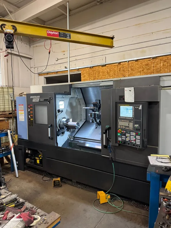 2018/2019 Doosan Puma 3100LY CNC Lathe featuring a 12" Samchully chuck, 26.38" swing, 2,800 RPM spindle speed, Fanuc i Series control, and a 12-station turret with C-Axis live tooling. Includes tool holders, LNS Turbo Chip Conveyor, and more. Ideal for precision tasks.